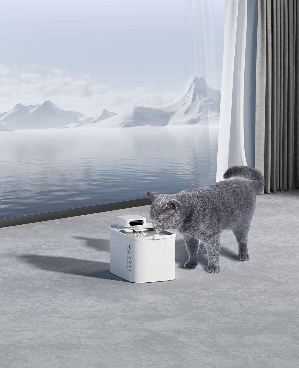 Een batterijgevoede drinkfontein met een capaciteit van 3 liter die tot 83 dagen werkt en huisdieren overal en altijd voorziet van vers drinkwater. Hiermee kunnen huisdiereigenaren het drinkgedrag van hun huisdier volgen en gepersonaliseerde werkmodi instellen via de PETKIT-app.