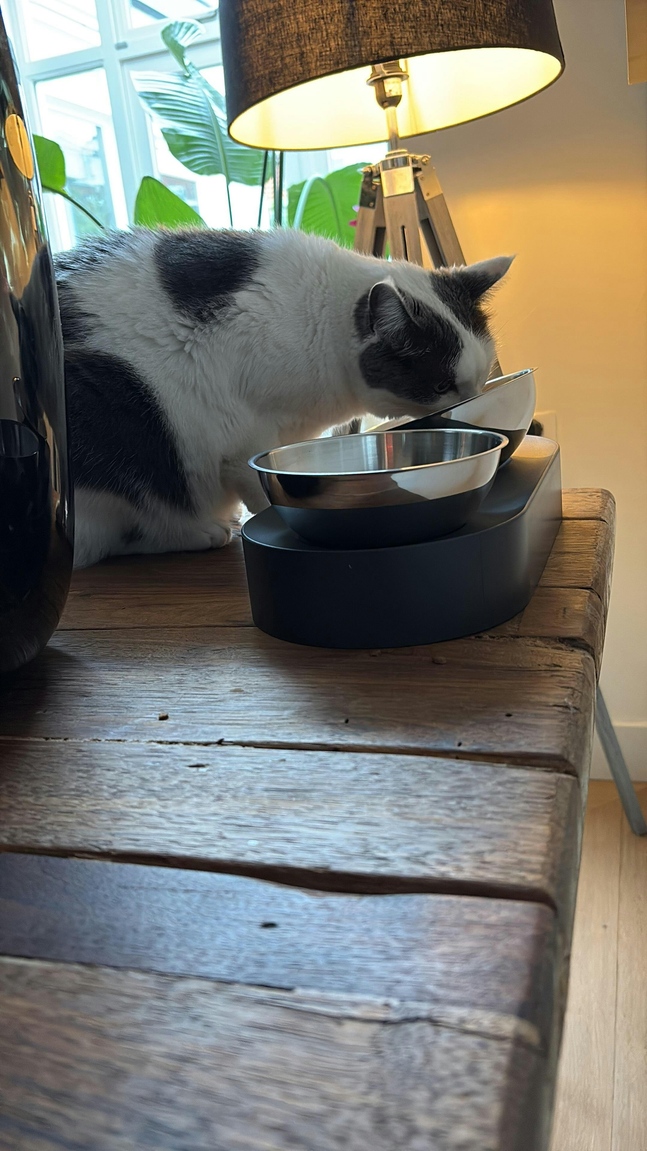 Deze voerbak is geschikt voor alle katten. De verhoogde en verstelbare positie ondersteunt een betere spijsvertering en vermindert druk op rug en heupen, waardoor je kat comfortabel en gezond eet.